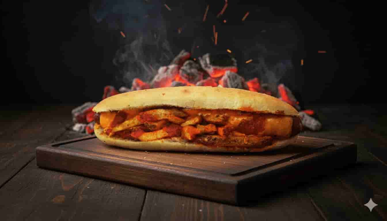 Marinade secrète, cuisson agressive à la flamme. Le retour du vrai goût.